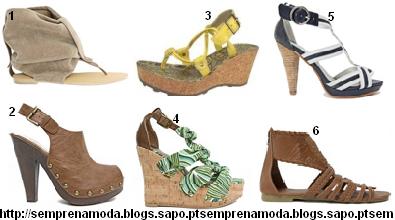4. Sandálias de cunha:Perfeitas para um final de tarde ou para o inicio de uma noite descontraída. Parecem muito altas mas, ao serem compensadas não fazem com que o pé fique a "pique" e são assim, muito confortáveis.