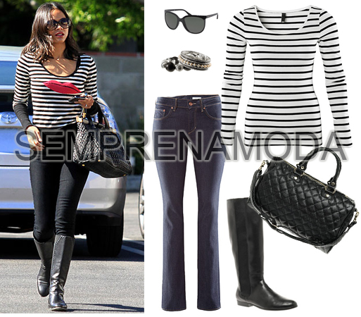 Sei que por vezes as leitoras se interessam por looks mais clássicos, fáceis de recriar e sobretudo looks que sejam práticos para o dia-a-dia. Quando recrio um look tenho isso em atenção e este da Zoe Saldana é a prova disso, um look com cores sóbrias e que no entanto não tem nada de aborrecido.