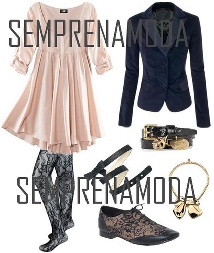 Este é um look muito feminino e harmonioso, quase de menina de colégio.