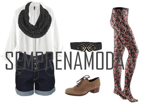 A combinação dos calções de cinta subida com o padrão dos collants e o modelo dos sapatos