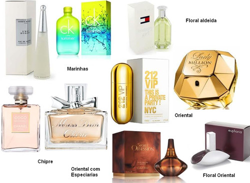 Notas principais:florais aldeídos são um subconjunto da categoria chipre. Contêm aldeídos, que são substâncias químicas de cheiro verde e floral (muitas vezes jasmim e rosa).