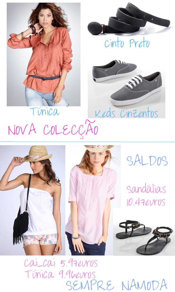 Estou a pensar comprar algumas coisas que estão em Saldos. Estas sandálias pretas certamente não me irão escapar, são mesmo o que procurava e além disso o preço é óptimo! Sou fã de túnicas e para mim estas nunca são a mais, estou a precisar de comprar uma cor-de-rosa. Acham que faço uma boa compra se comprar a da imagem?