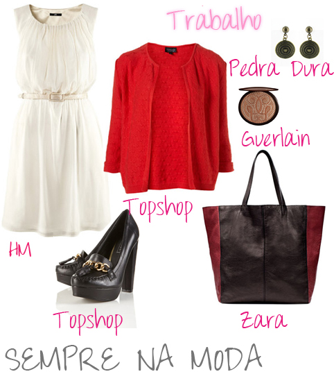 Nem todas os empregos têm as mesmas necessidades relativamente ao outfit, mas decidi conjugar este vestido de forma elegante para um dia de trabalho. Os mocassins, quer rasos, quer de saltos, são uma boa opção. Escolhi uns mocassins de salto pretos, bem altos, mas com plataforma, de modo a serem confortáveis. Este género de casacos são uma boa alternativa aos cardigans básicos, visto que são mais elegantes e compõem bem mais um look. A mala que escolhi é grande nas cores preto e vermelho, mas se preferirem podem optar por uma mala mais pequena. Os acessórios devem ser escolhidos a gosto, brincos, colares ou pulseiras (apesar das pulseiras nem sempre serem boa opção, não é?).