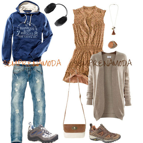 Sweatshirt rosa da Wesc; Sweatshirt com várias cores da Billabong; Sweatshirt verde da H&M; Ténis da Vans; Botas de montanha da Timberland; botas da UGG; Calças de ganga da H&M; mochila da Eastpak; mala da Hurley (?); Pulseira e genchos da H&M