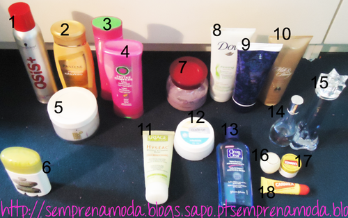 Pelo blog recebo muitos produtos de beleza e por isso vou experimentado uns e outros, alguns tornam-se nos meus preferidos, outros nem tanto... Hoje tenho para vos mostrar 18 produtos que considero como essenciais e que são aqueles que mais uso, no entanto tenho mais produtos que vou usando! Tirei uma foto aos produtos e em baixo têm a legenda da fotografia e umabreve descrição sobre os mesmos: