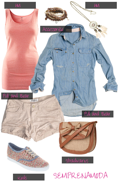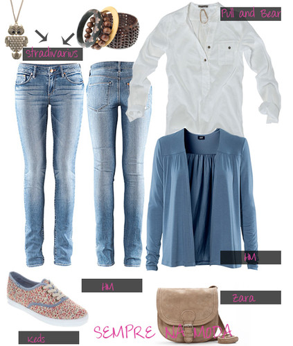 Este look é um pouco mais feminino do que o anterior, contudo os sapatos têm um estilo masculino, os oxford shoes. O vestido tem um padrão muito pequenino e é num tom acastanho, que combina na perfeição com os sapatos. No caso de estar um pouco de frio aconselho usarem um casaquinho, quer seja de malha ou como o que coloquei na imagem (que fica bem com a parte de renda dos sapatos). Estas pulseiras, mesmo não sendo nos mesmos tons que o look ficam muito giras, se quiserem coloquem também uns brincos ou um colar.