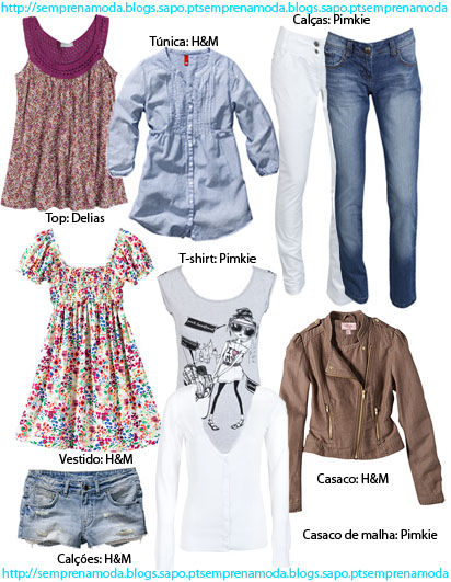 - 4 calças (ex: 3 de ganga e umas brancas)